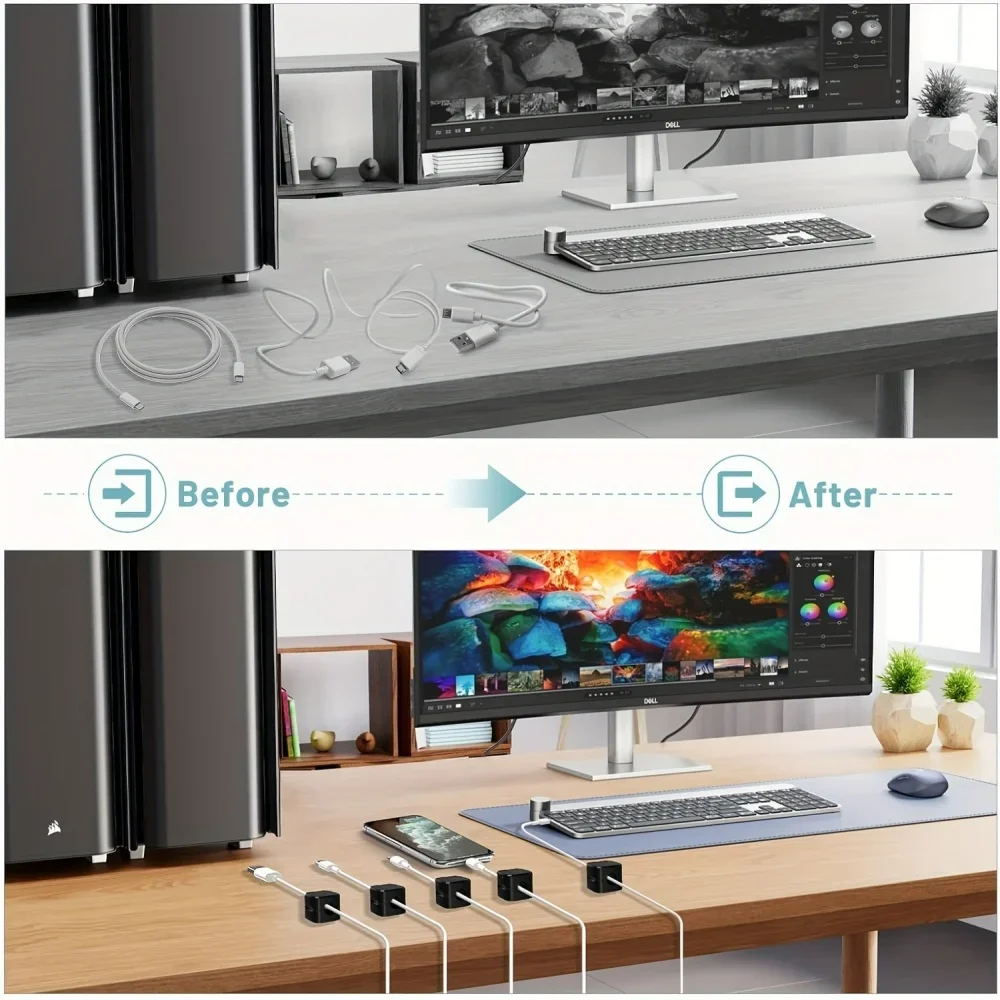 Elevate your workspace with magnetic cable clips that keep your cables perfectly in place—no clutter, no cables on the floor, just effortless order.
