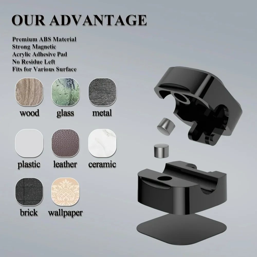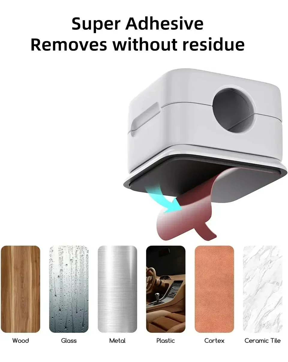 Strong adhesive backing attaches cleanly to desks, walls, nightstands, or under desks—no tools, no drilling, no damage.